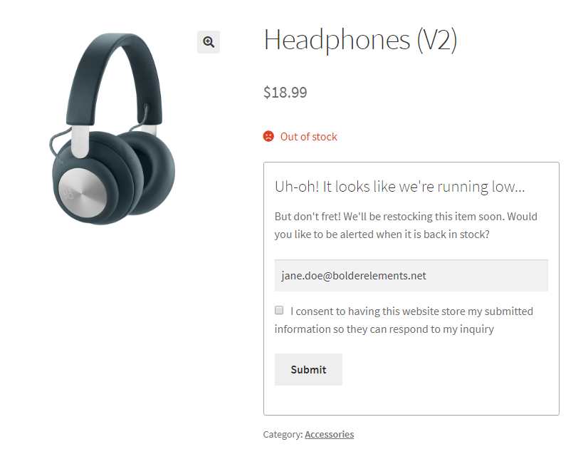 补货提醒:控制电子邮件主题、标题、类型和通知文本。更新按钮文本、成功注册或重复通知的简单选项,以及启用验证码和控制产品警报位置的选项。
