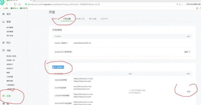 微信公众平台设置服务器域名,将你nginx中https配置的域名添加到域名列表中(配置完后,微信开发者工具要重启才能生效)
