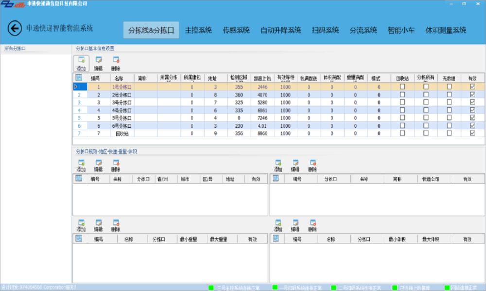 三,系统功能:分栋监控、主控系统、传感系统、自动升降系统、扫描系统、分流系统、智能小车、体积测量系统,可与PLC下位机进行通信连接 与K8系统进行对接。