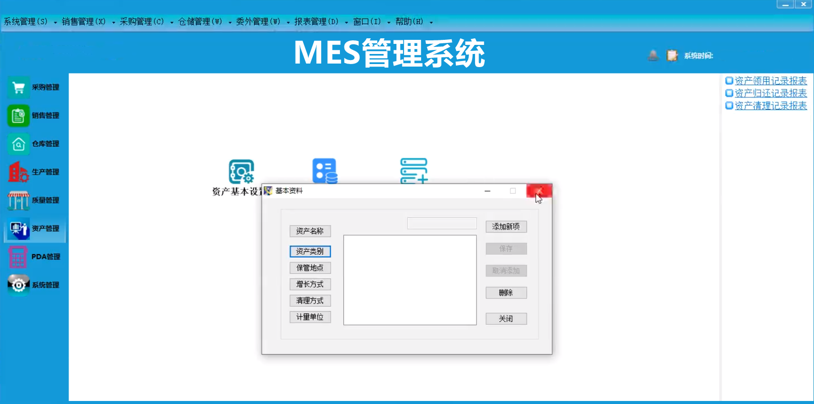 5.资产管理: 资产基本设置 资产名称 资产类别 保管地点 增长方式 清理方式 计量单位