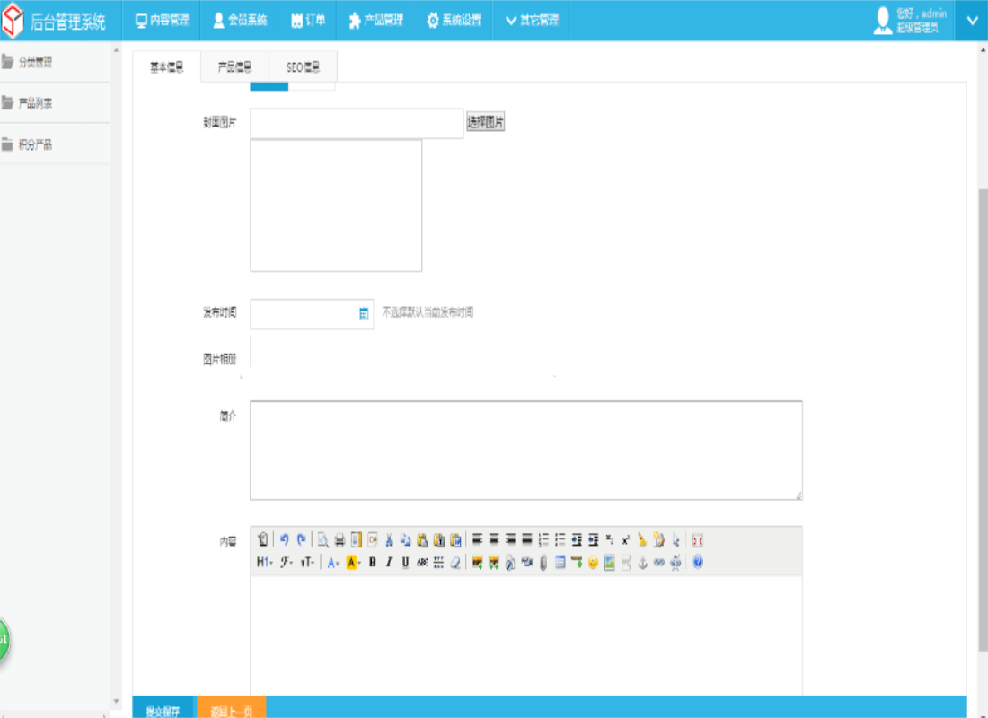 4、 产品管理:分类管理 、产品管理 、 积分产品管理