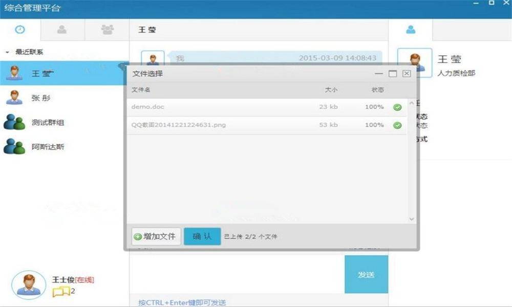 二,企业内部使用的一个即时通讯工具,实现了即时通讯,发送文件,群组通讯等常用功能 .软件包含了三部分,客户端,服务器端,一个辅助的发送文件的WEB应用,最新版本界面参考了 PC端的微信。