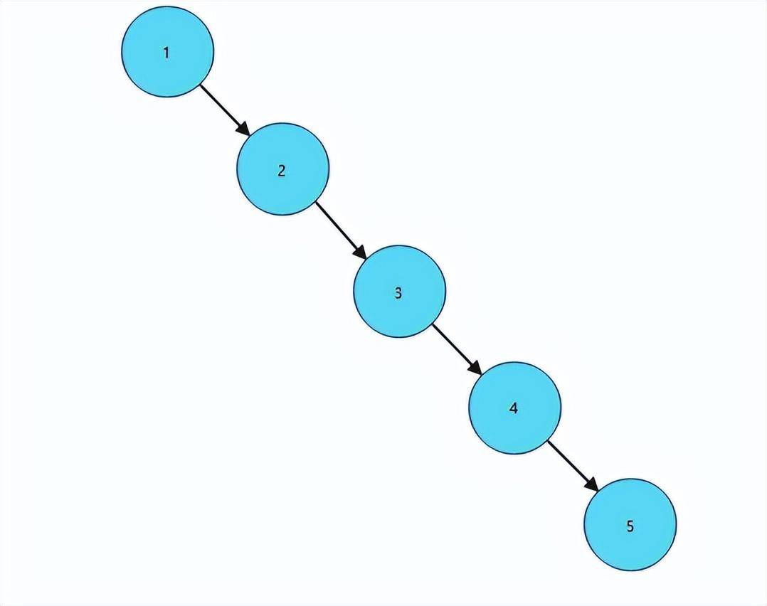 3、二叉树支持动态的插⼊和查找,保证操作在O(height)时间,这就是完成了哈希表不便完成的⼯作,动态性。但是⼆叉树有可能出现worst-case,如果 输⼊序列已经排序,则时间复杂度为O(N)。为什么不用二叉树来作为索引,就是因为二叉树的worst-case,如果输入序列是排好序的,那么二叉树的结构就会变成如下图所示的特殊状态: