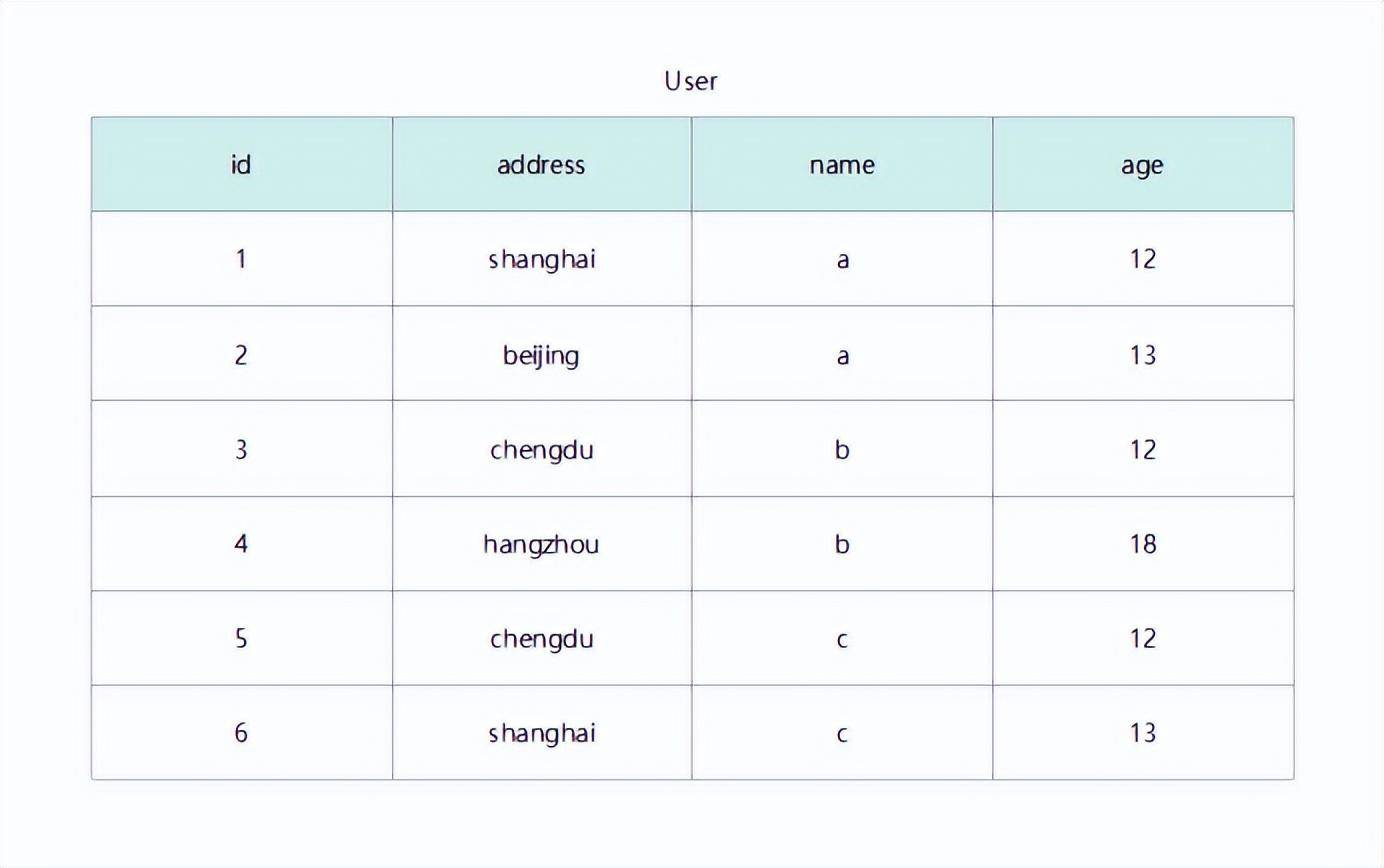 select id,address from user where name = ‘a’ and age = 12