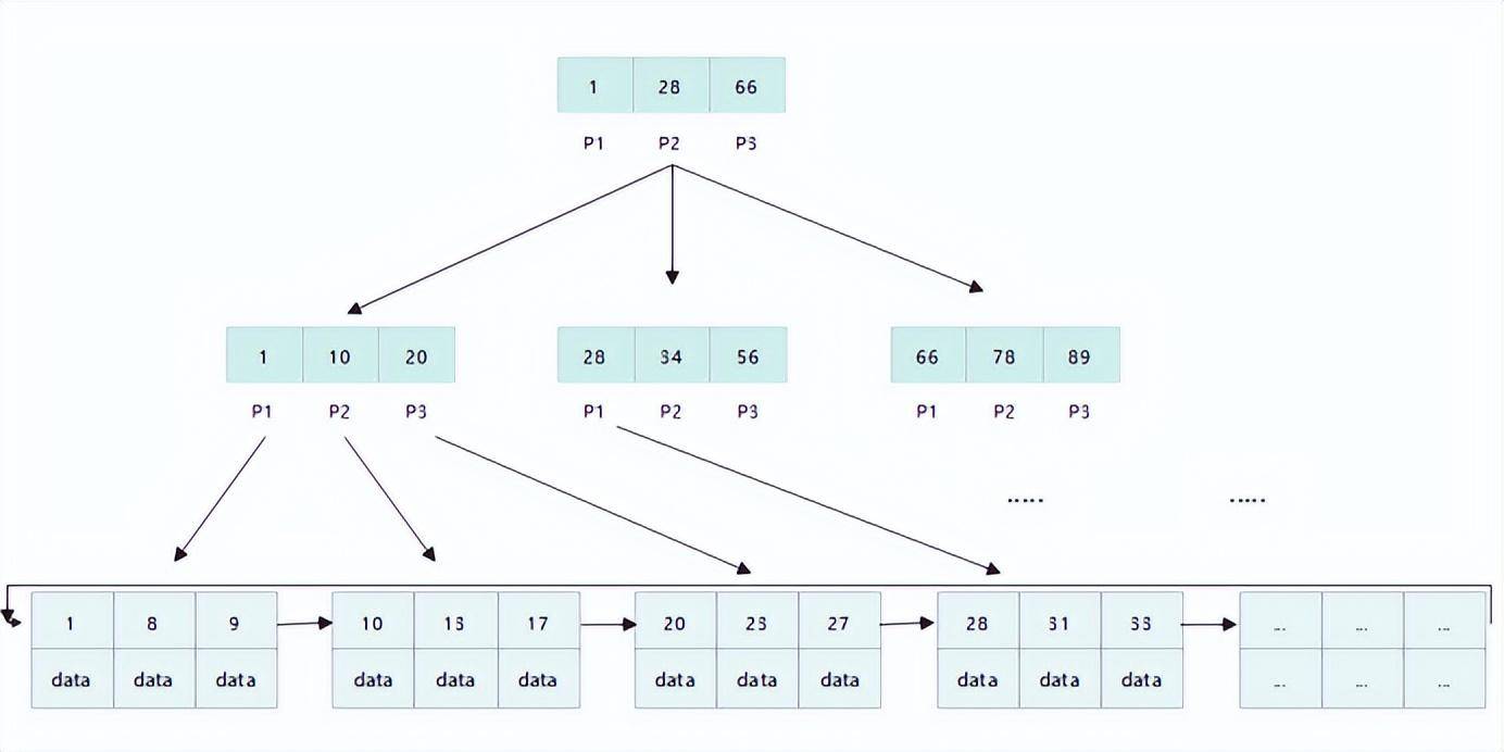 叶子节点增加了一个指向相邻子节点的指针,它的最后一个数据会指向下一个叶子节点的第一个数据,形成一个有序链表的结构,提高区间访问的性能。