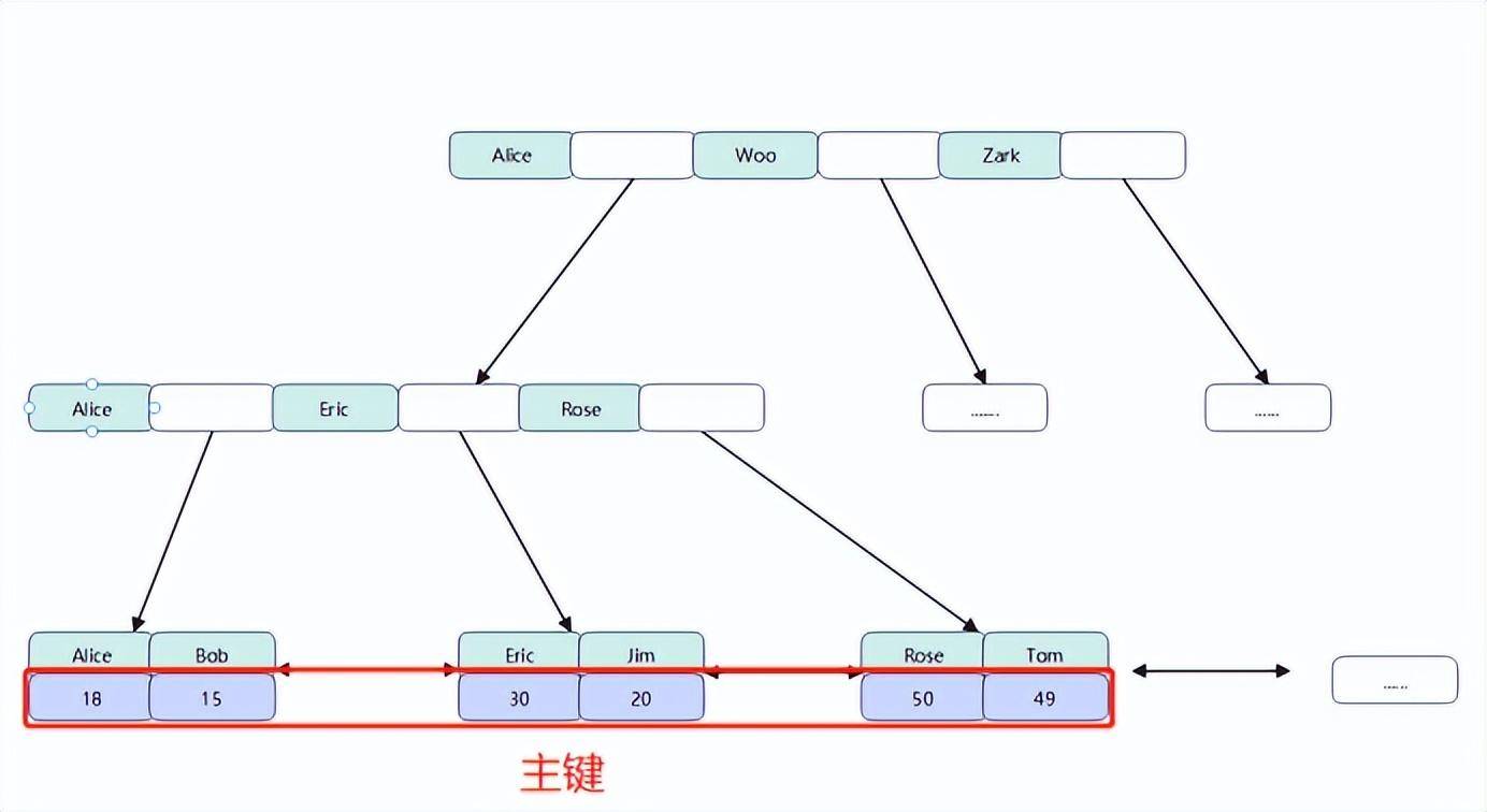 (3)B树在提高磁盘I/O性能的同时并没有解决元素遍历效率低下的问题。而B+树因为叶子节点有链指针存在,所以遍历叶子节点即可以实现对整棵树的遍历。而在数据库中基于范围的查询是非常频繁的,B+树就能更好的支持。