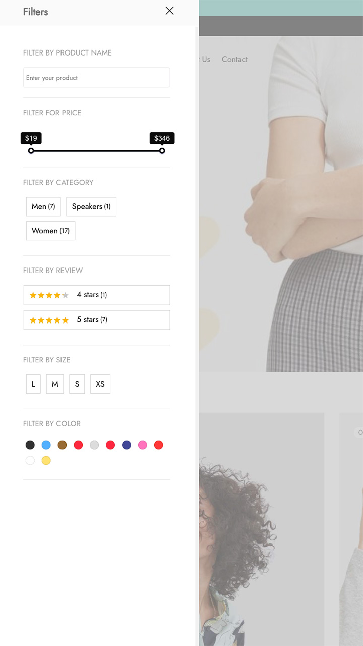 用户可以决定是否在模式窗口中显示 WooCommerce 产品过滤器。如果禁用此功能,过滤器将出现在小部件的侧边栏上。如果启用,用户可以使用各种可用的自定义选项自定义模态外观以符合他们的期望。