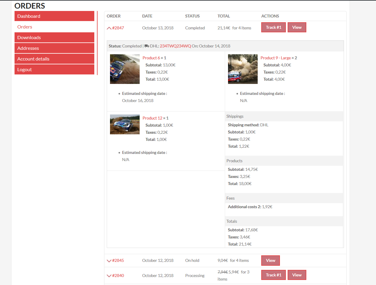 WooCommerce 订单详细信息增强了“我的帐户”->“订单”页面,提供了一种简洁明了的风格,让您的客户可以在一页中查看所有订单详细信息!