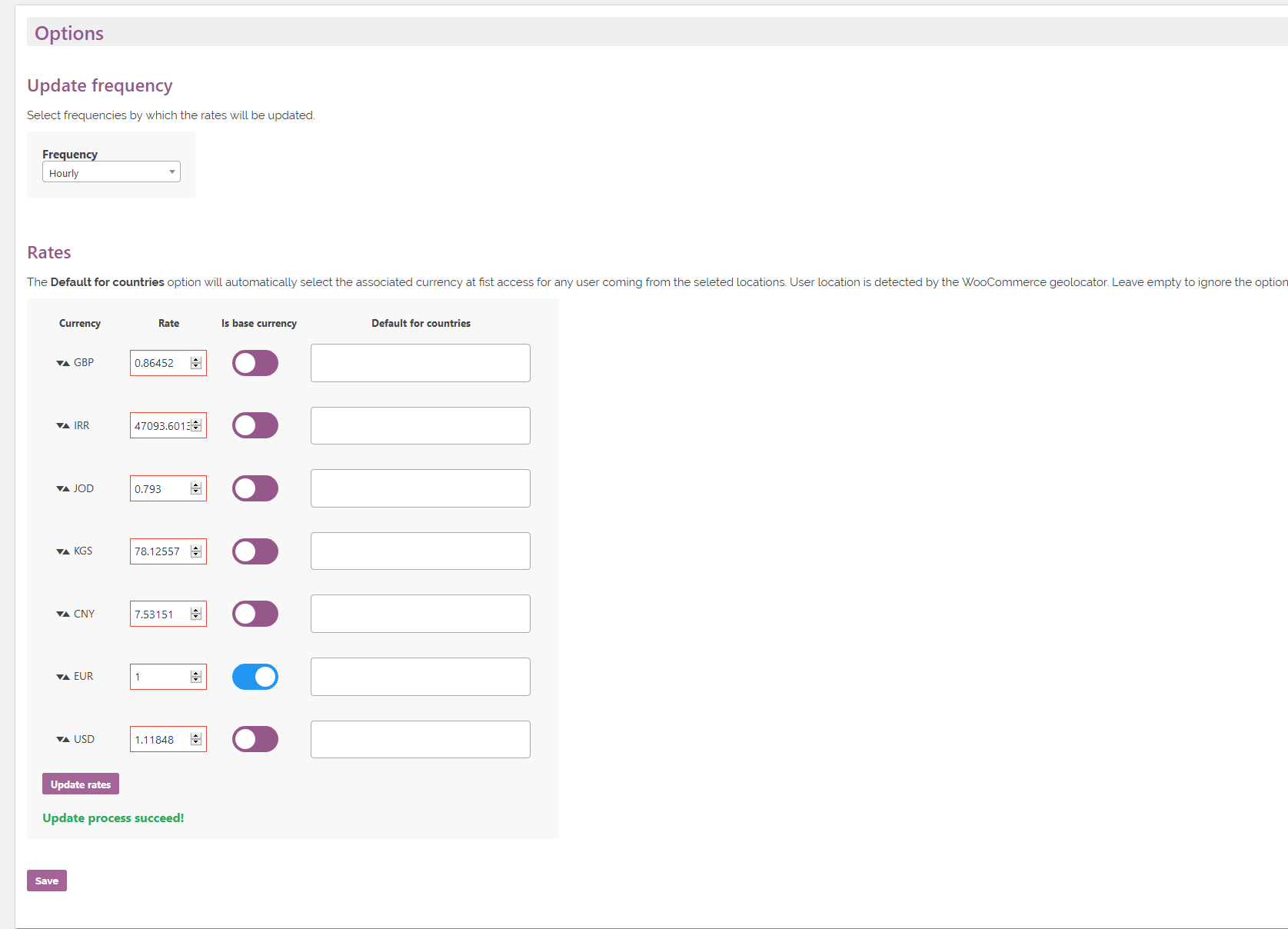 它不需要您配置任何付费的第 3 方服务来更新费率或任何其他棘手的设置!它依赖于自己的更新率系统(由 CurrencyConverterApi 提供支持),不需要任何额外的配置。