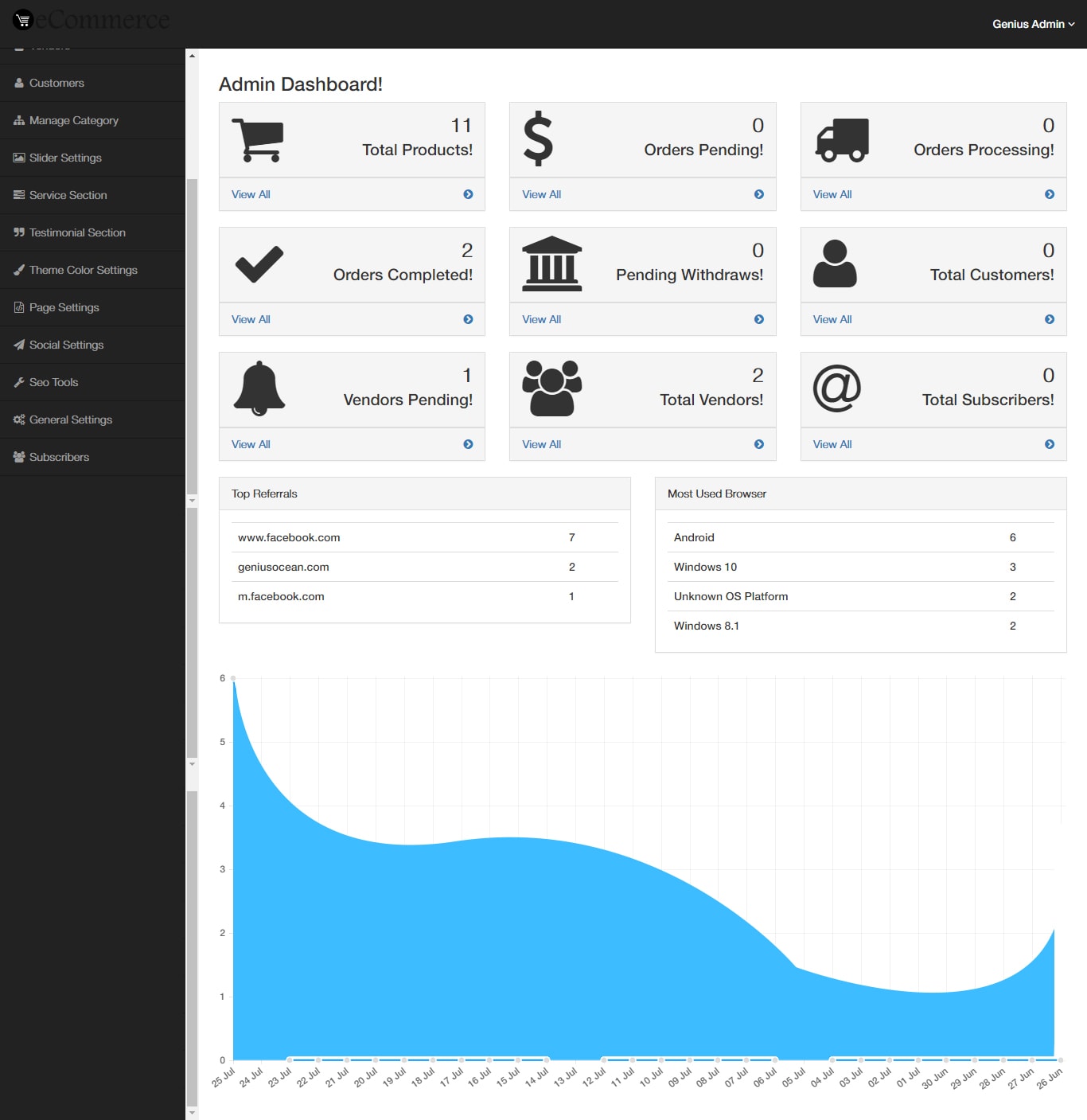 “Ecommerce PRO”是多供应商电子商务业务管理系统的完整解决方案。该 CMS 几乎包括您制作电子商务网站所需的一切。 Paypal、Stripe 和 Payment of Delivery 集成在一起,便于付款交易。用户、供应商和网站管理员共有三种类型的管理面板。当用户从不同的供应商处购买不同的产品时,管理员将获得订单详细信息,每个供应商将获得他/她产品的订单详细信息。供应商将看不到其他供应商的订单详细信息。