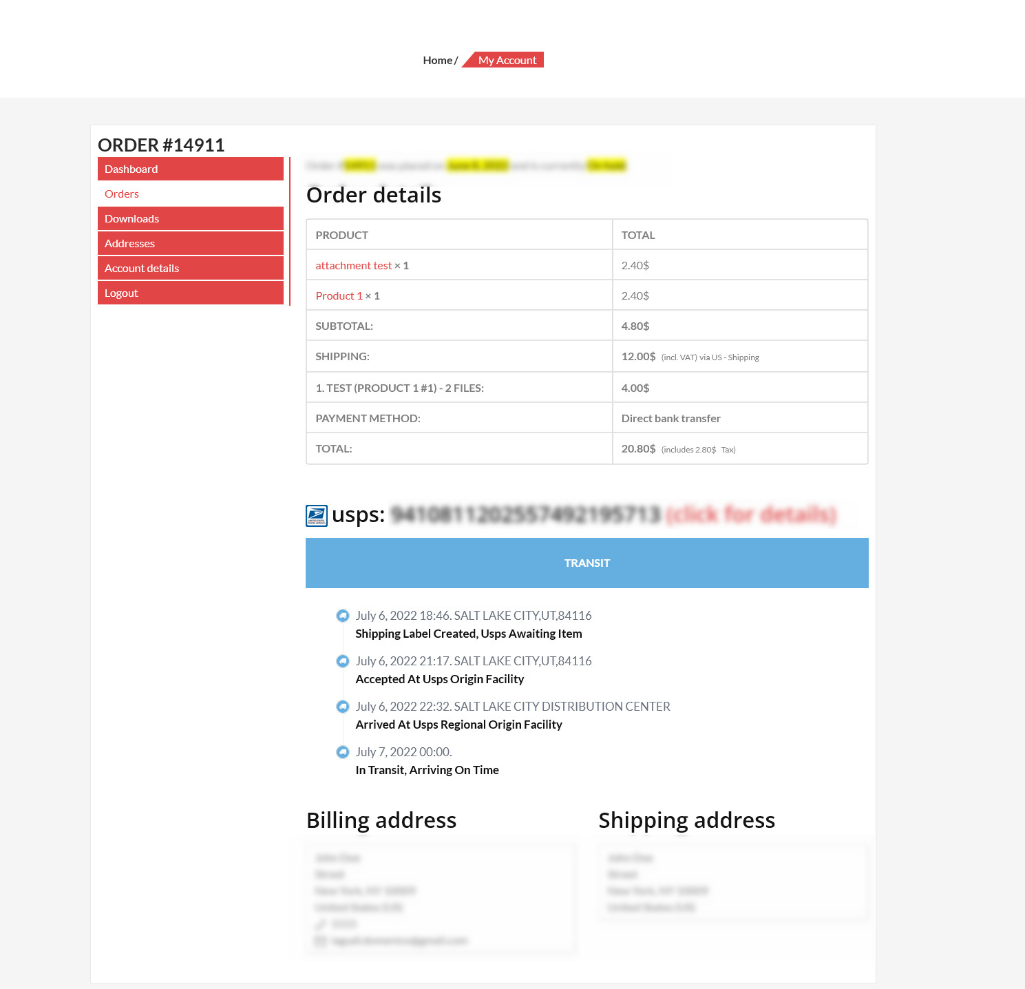 而已!该插件将自动让您了解跟踪状态的最新信息,并将自动在前端订单详细信息页面中显示与订单关联的每个跟踪代码的状态时间线!