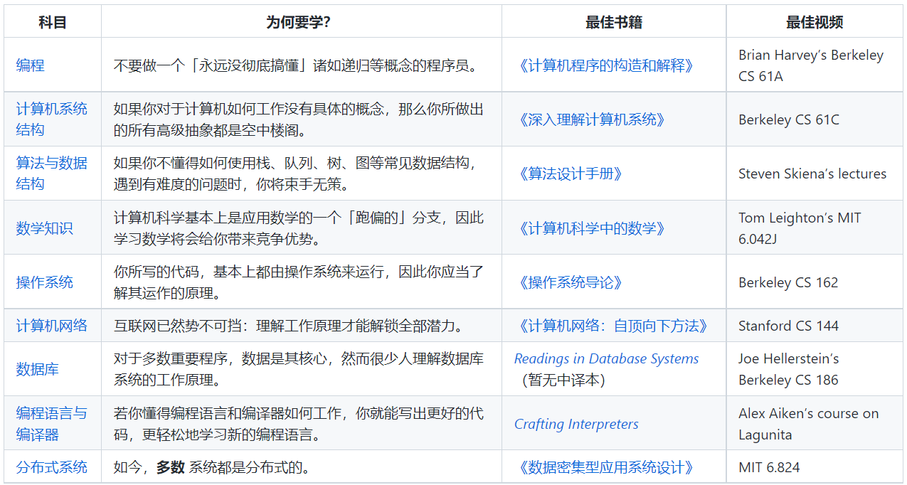 TeachYourselfCS 内容的中文翻译,原作者为 Ozan Onay 和 Myles Byrne。如果你是一个自学成才的工程师,或者从编程培训班毕业,那么你很有必要学习计算机科学。通过本课程可以获得世界一流水平的教育。