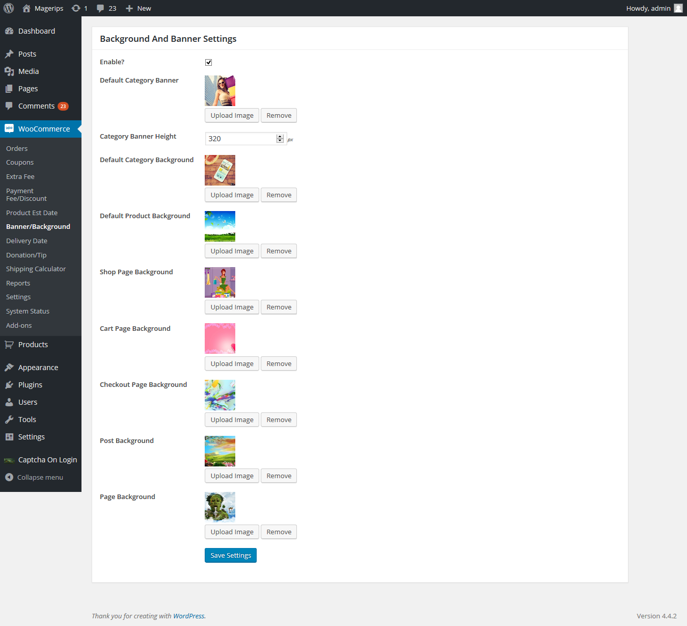 您可以从插件设置页面设置商店页面、购物车页面、结帐页面背景。