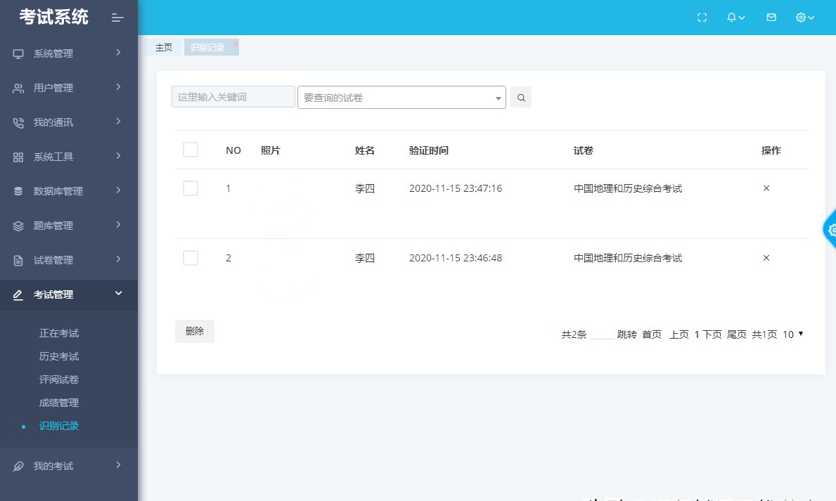 2.人脸识别(非必用,考试时验证,有开关)[百度api技术,收费规则根据百度为准]、补考开关