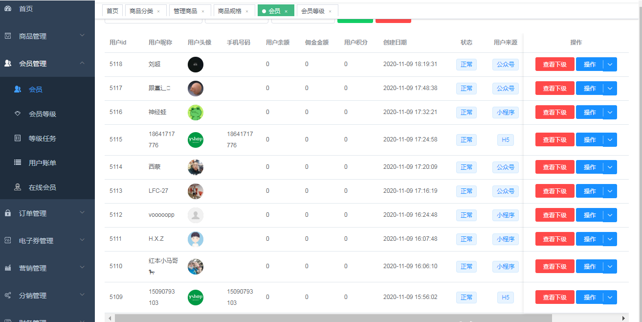 1、后台管理:
