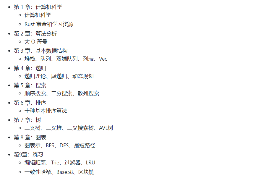 一本用简体中文和繁体中文写的关于Rust 编程语言的书。本书包含 9 章,其中有一些数据结构和算法以及实际演示。