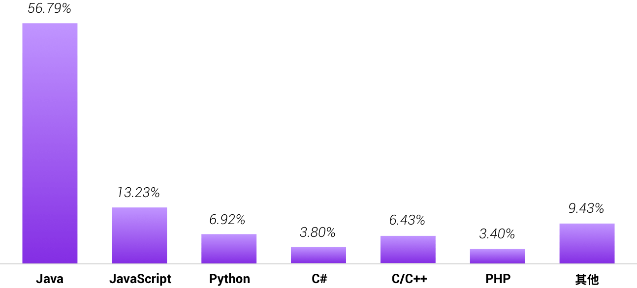 Java 在国内仍然是使用最广泛的语言,主要应用于 Android 应用的开发与后端应用开发。在 Gitee 2021 年新增的开源项目中,使用 Java 语言的占比超过 56%。Java 仍保持着强大的竞争力,面对来势汹汹的新语言也毫不示弱。虽然谷歌近两年来“Kotlin First”的战略对 Java 来说是一大挑战(开发 Android 应用,Kotlin 成为了与 Java 一样的一级语言),但 Java 仓库数量在极高存量的情况下仍有不错的增长态势。