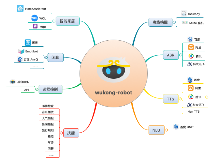 wukong-robot 是一个简单、灵活、优雅的中文语音对话机器人/智能音箱项目,目的是让中国的 Maker 和 Haker 们也能快速打造个性化的智能音箱。wukong-robot 还可能是第一个开源的脑机唤醒智能音箱。