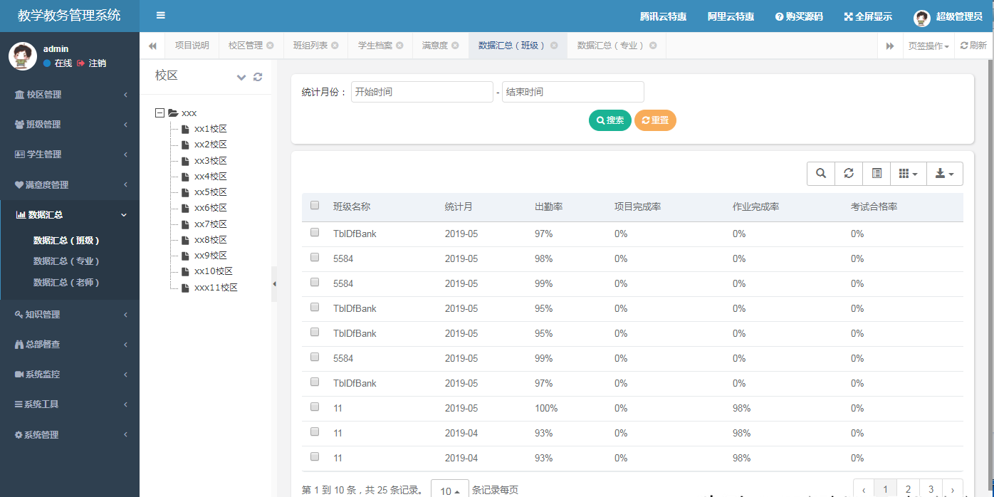 满意度管理:数据汇总(班级) 数据汇总(专业) 数据汇总(老师)