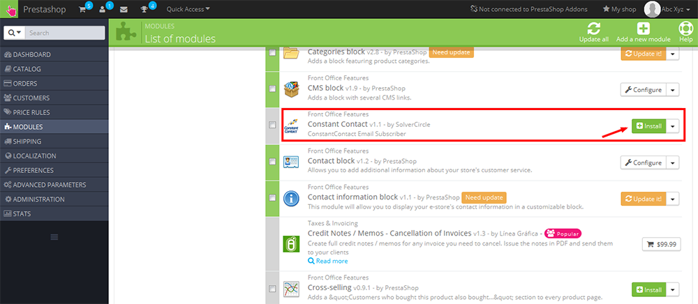 ‘Constant Contact Subscription with Custom Popup for Prestashop’模块具有一些出色的功能并且非常易于设置。 ‘Constant Contact Subscription with Custom Popup for Prestashop’模块更加灵活,并且与 Prestashop 存储库中的许多现有模块兼容。该模块是完全可定制的。用户可以轻松地将模块配置到新的或现有的 Prestashop 网站中。