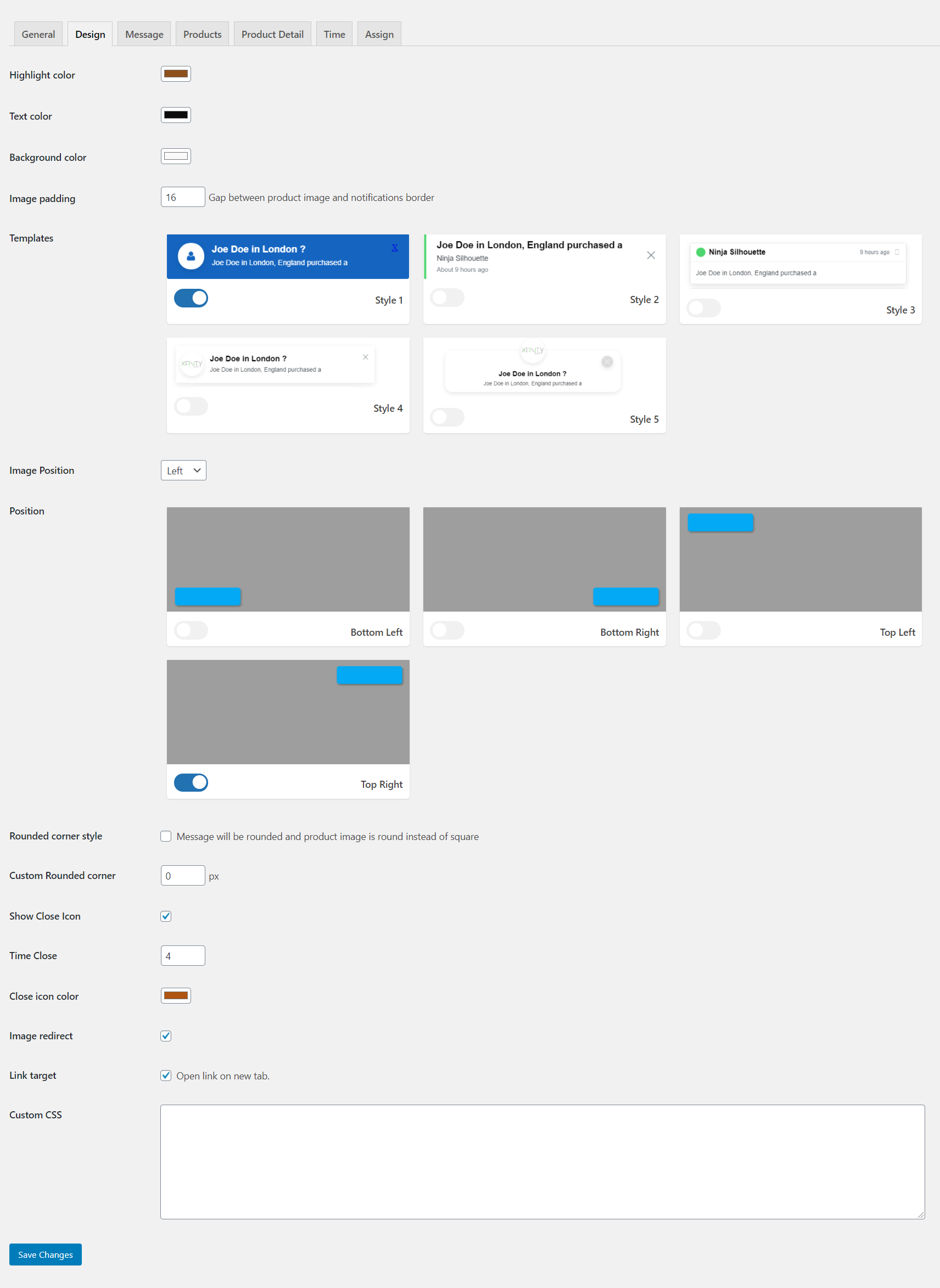 WooCommerce 插件的最近销售弹出窗口提供了多种设计选项,因此您可以根据需要设计销售通知弹出窗口。
