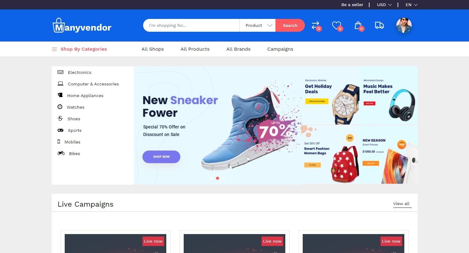 Manyvendor 电子商务客户移动应用程序 – Flutter iOS 和 Android(29 美元)(免费更新)