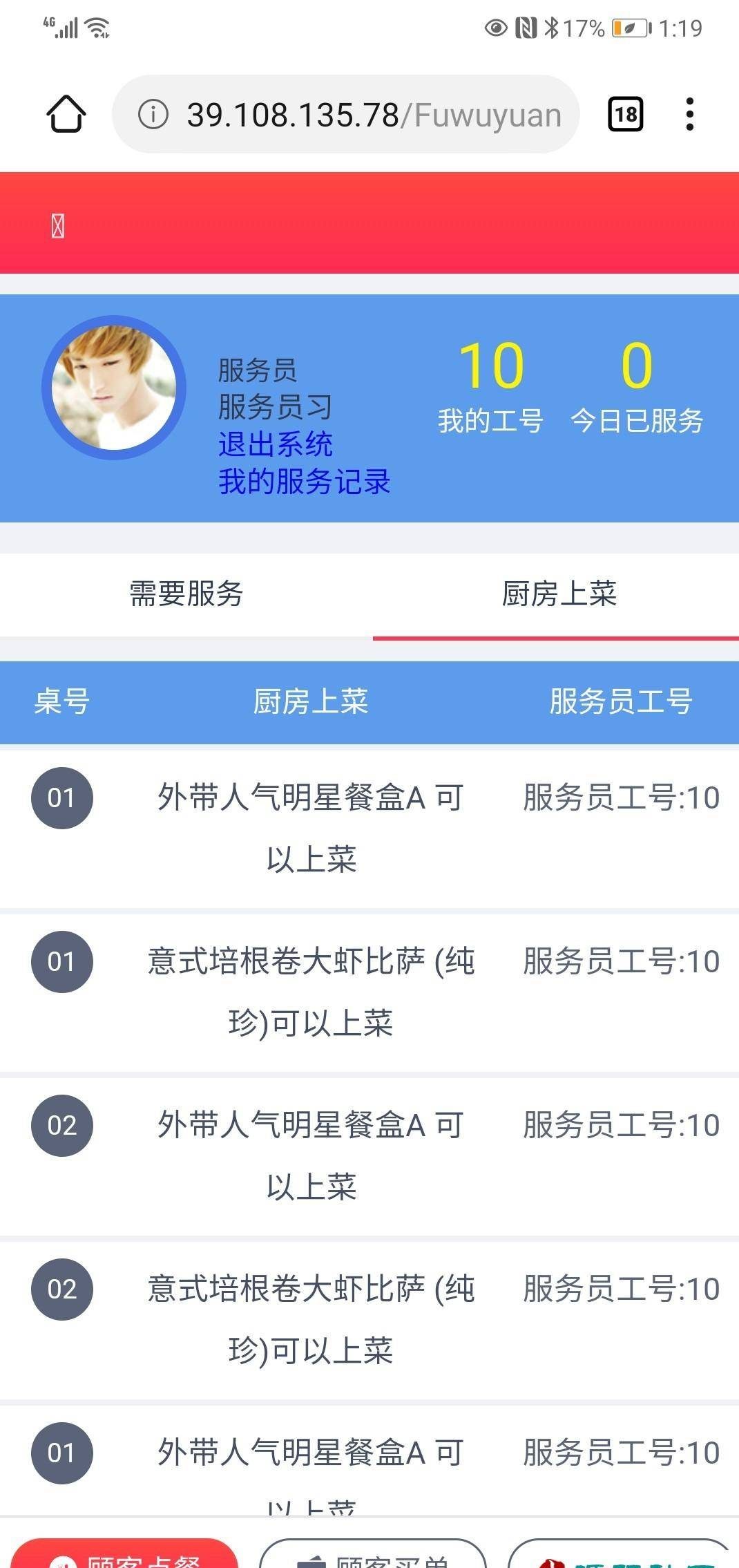 3 )客户呼叫服务可以选择一些经常需要的服务,选择了服务后,服务员的界面能及时有通知