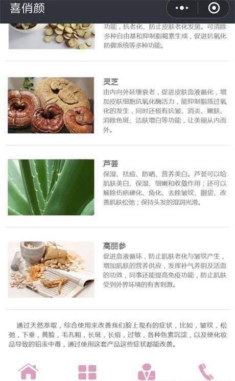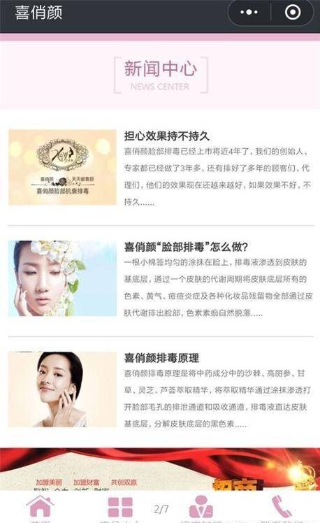 为美容化妆企业定制开发的微信小程序,包含企业的产品、新闻、视频、关于、联系、留言