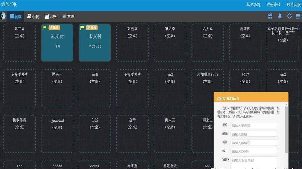 1、主要点餐、手机点菜、餐桌管理、服务员管理 、订单管理、优惠管理、运营分析、报表等