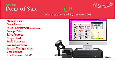 完整源代码:您将获得带库存管理的高级 POS 的完整源代码,并为 SQL Server 和 MySQL 数据库提供程序构建版本。
