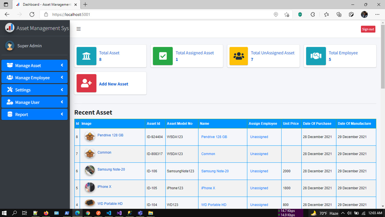 资产管理系统 (AMS) 是使用 ASP.NET Core 和 EF Core 代码优先技术开发的多功能完整 Web 应用程序。它使您能够通过适当的监控和动态报告系统为您的公司管理各种资产。您可以管理办公室中可用的资产,例如计算机、打印机、便携式硬盘、笔式驱动器等。您还可以跟踪资产的历史记录。