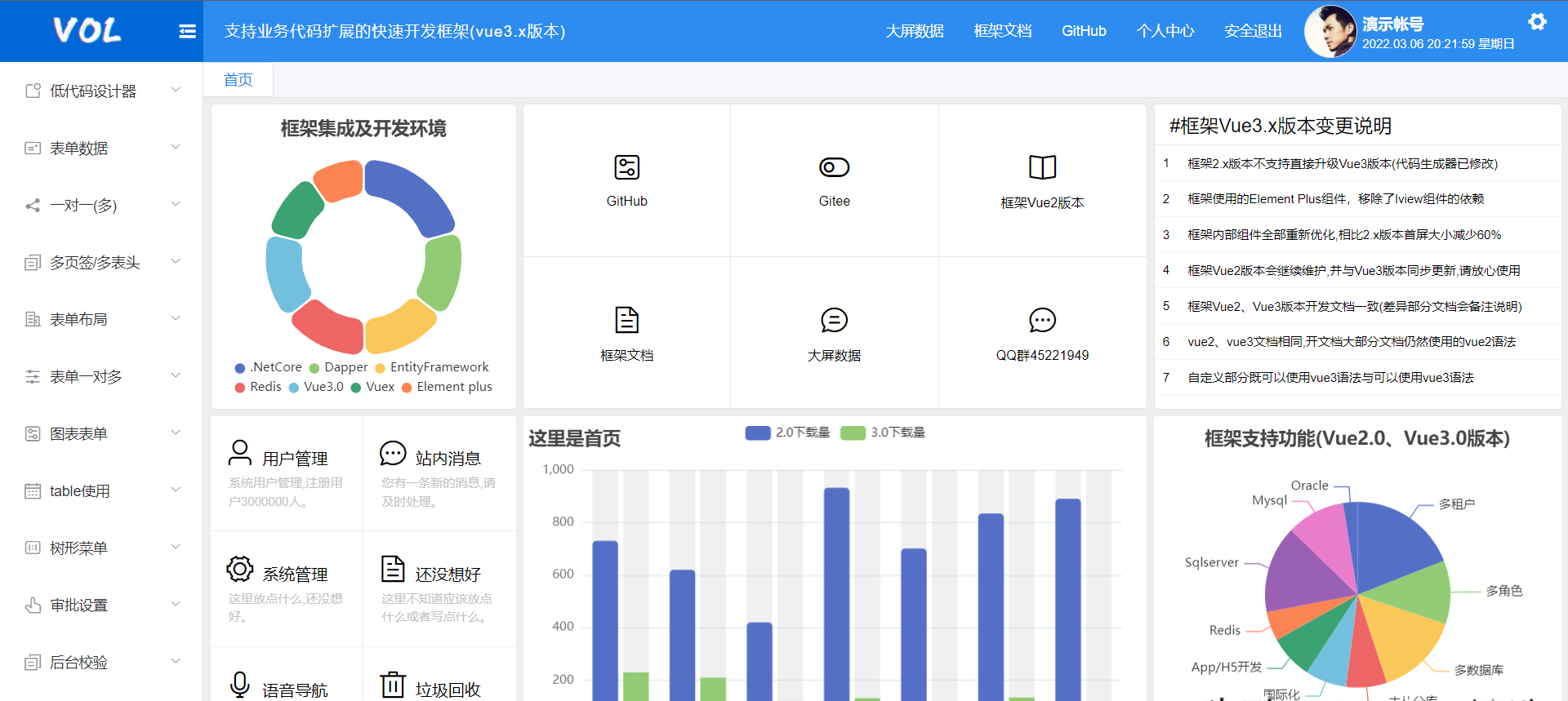 Vue + .NetCore 前后端分离的快速发开框架