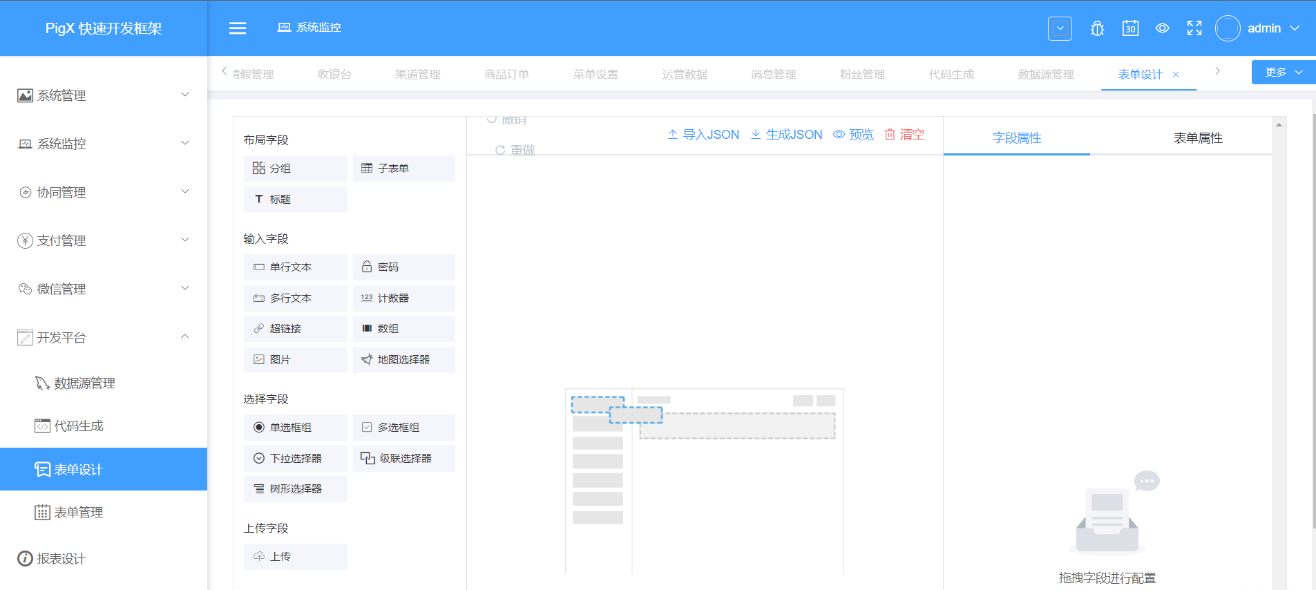 Erupt 是一个低代码 全栈类 框架,它使用 Java 注解 动态生成页面以及增、删、改、查、权限控制等后台功能。零前端代码、零 CURD、自动建表,仅需 一个类文件 + 简洁的注解配置,快速开发企业级 Admin 管理后台。高扩展性,支持CURD自由扩展 @DataProxy 、自定义数据源、逻辑删除、LDAP、OSS。