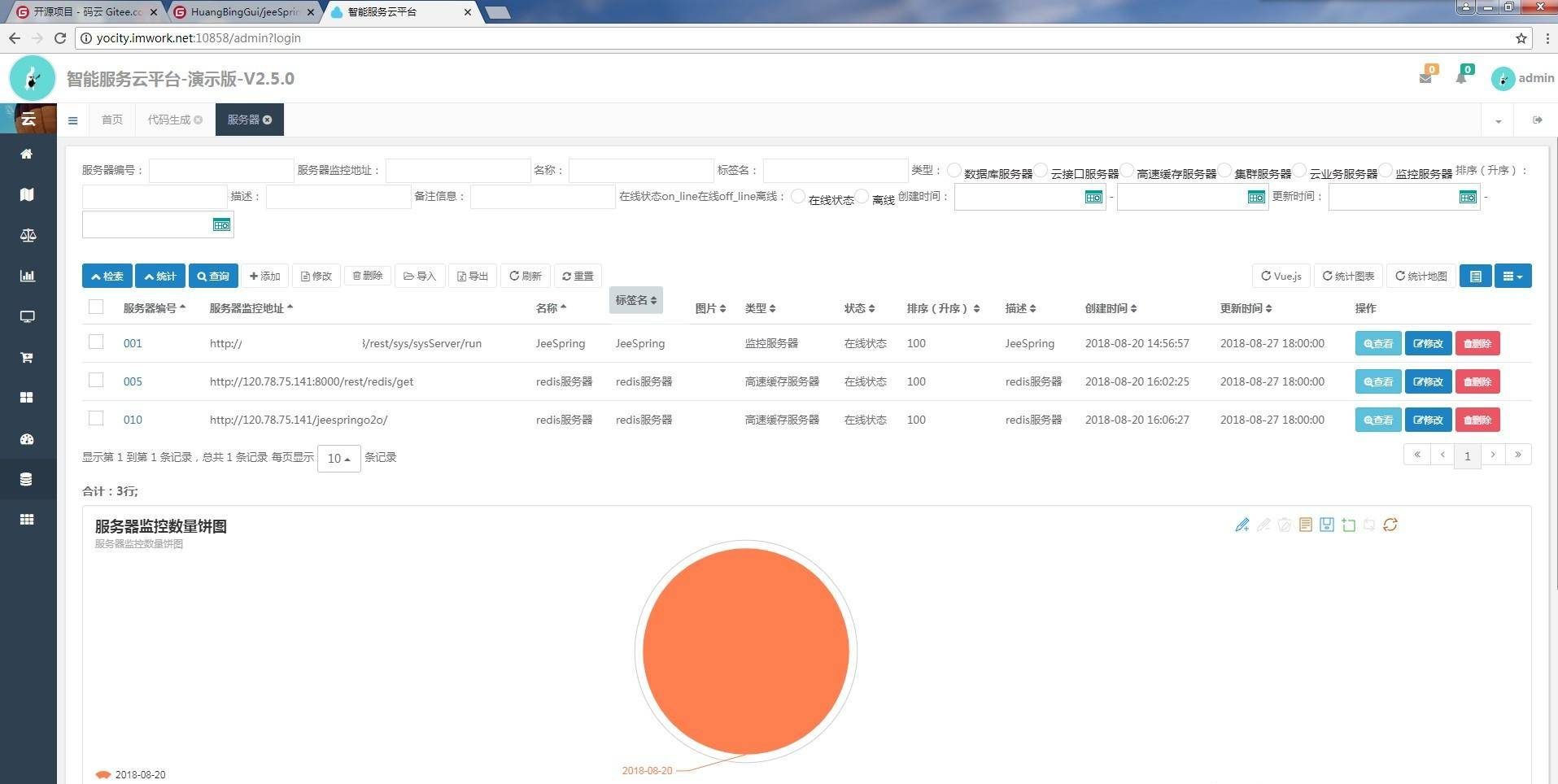 基于SpringBoot2.0的后台权限管理系统界面简洁美观敏捷开发系统架构。核心技术采用Spring、MyBatis、Shiro没有任何其它重度依赖。 互联网云快速开发框架,微服务分布式代码生成的敏捷开发系统架构。项目代码简洁,注释丰富,上手容易,还同时集中分布式、微服务,同时包含许多基础模块和监控、服务模块。