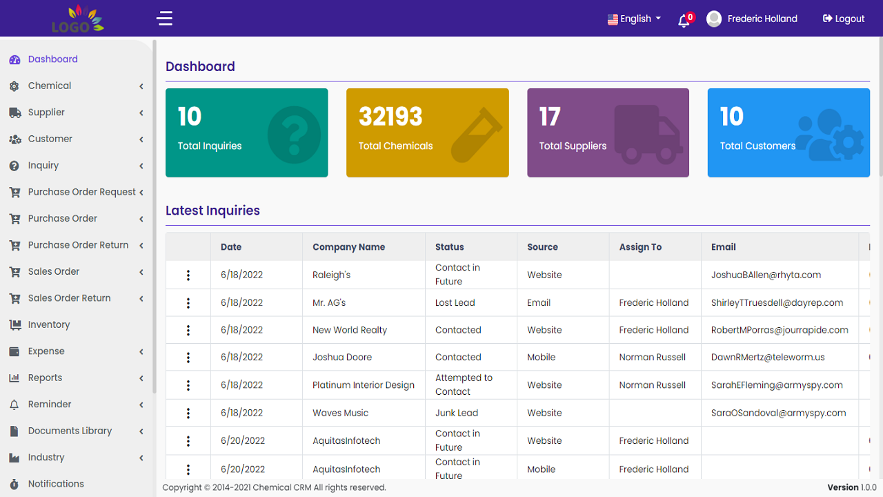 专业设计:Chemical CRM 采用专业设计和企业级架构构建。