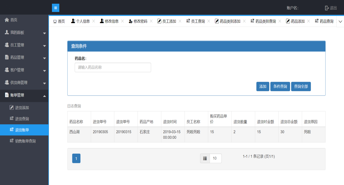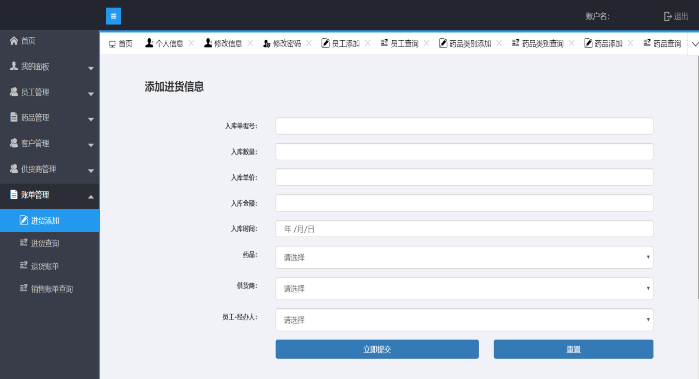 首页 我的面板 购买药品 客户数量 供货商数量 药品数量 销售数量
