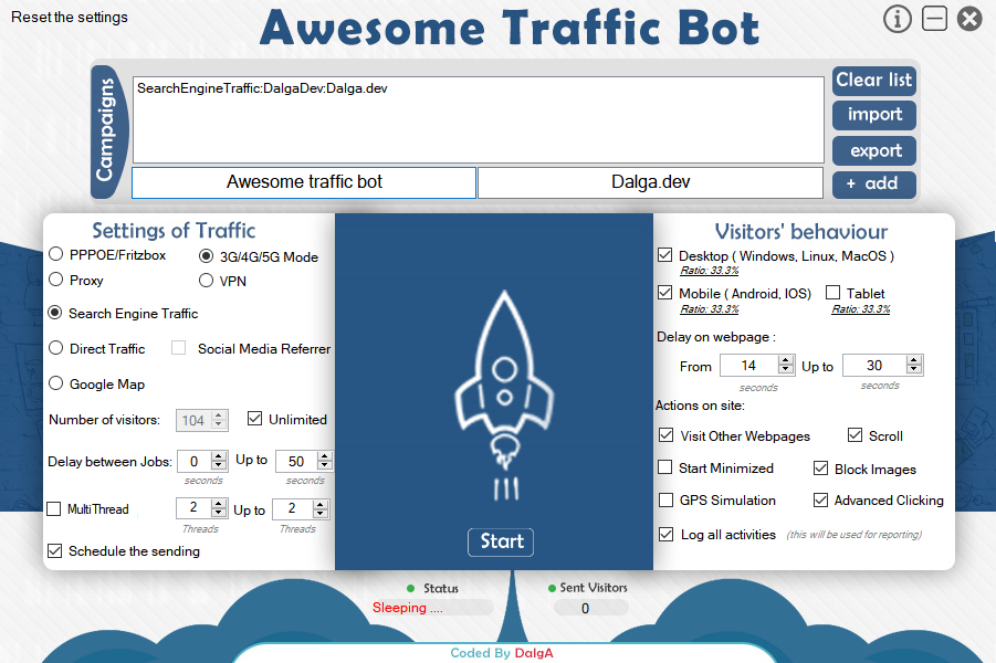 新:您可以定义用于发送推荐流量的网站列表(不仅仅是一个网站)。机器人将从这些链接中随机选择。
