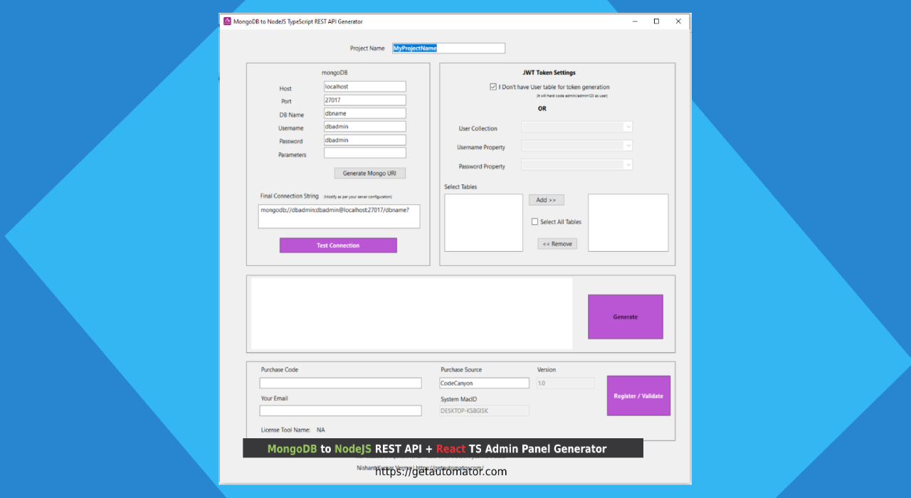 借助 Windows 应用程序,您可以灵活地使用 NodeJS REST API 多次生成完整的 ReactJS 应用程序。数据库中的任何修改都有工具可以再次生成代码。无需安装即可运行 ReactJS 应用生成器