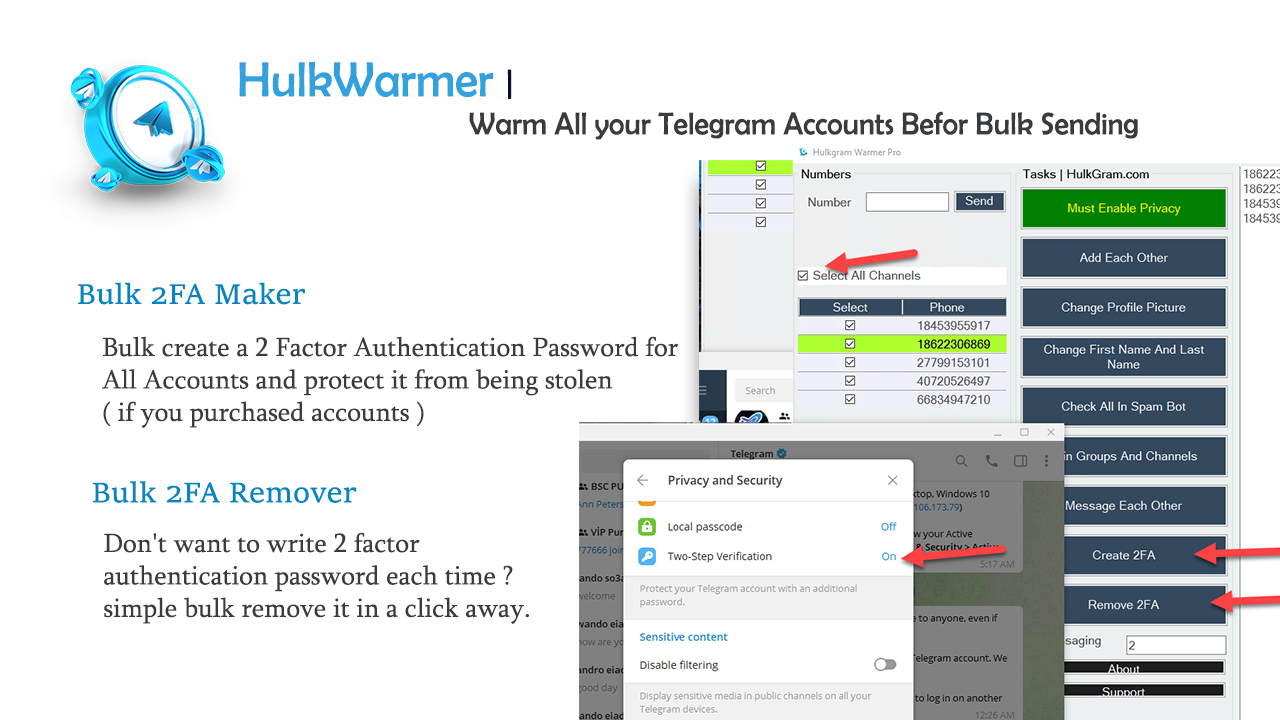 世界上排名第一且唯一的电报帐户热身工具,它允许您: