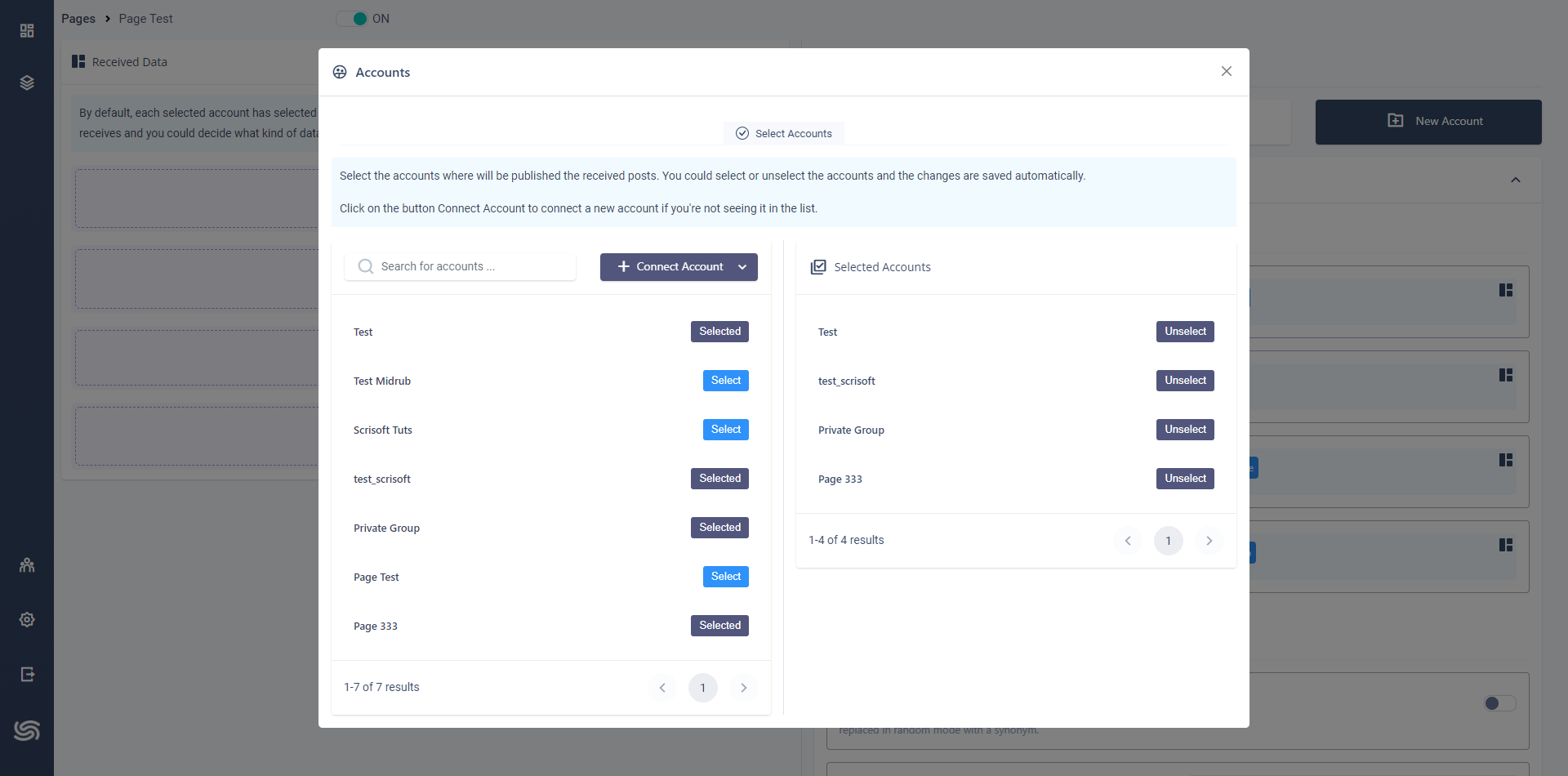 这些帐户可以通过单击连接,默认情况下它们已经配置为发布。通过单击所选帐户,用户可以决定不发布哪种数据(例如,用户只想发布没有视频或文本的图像)。