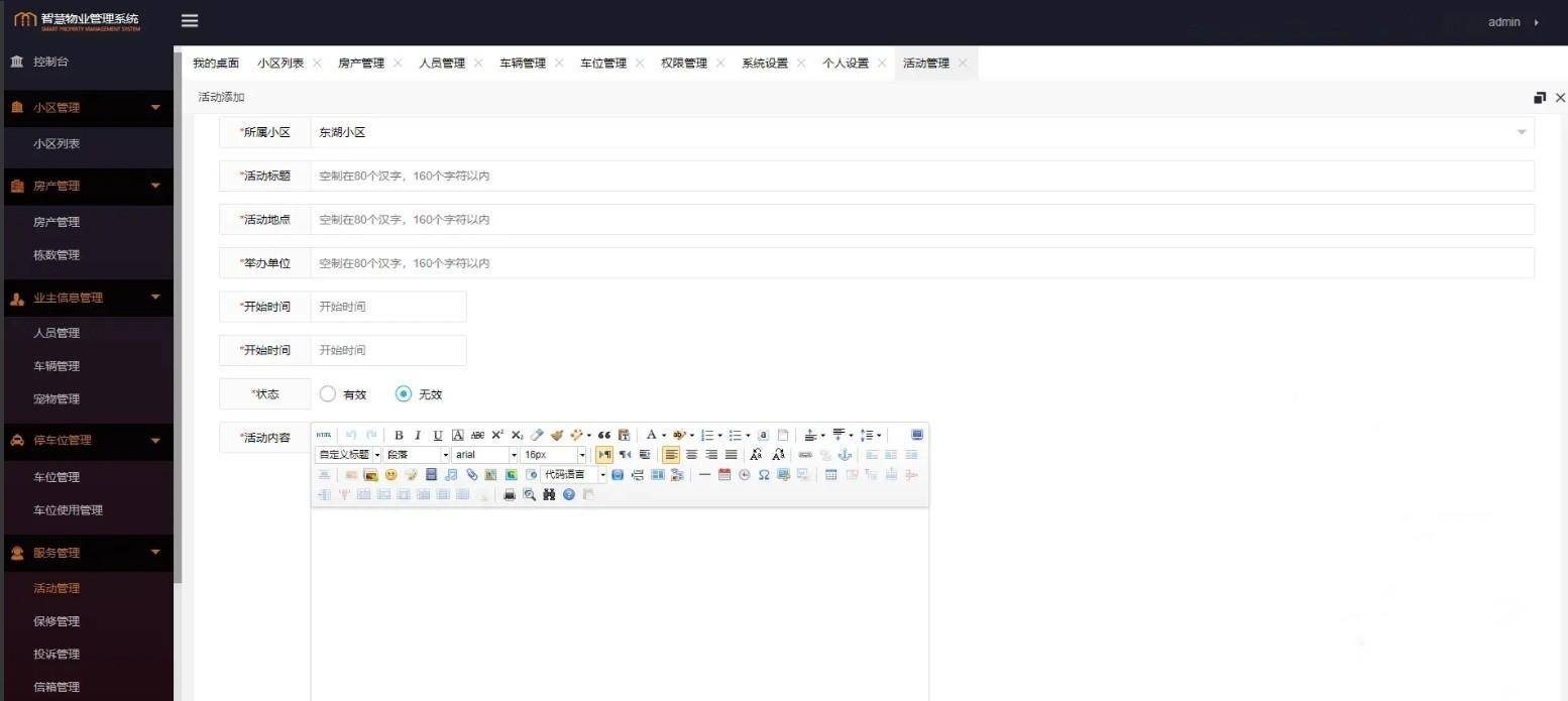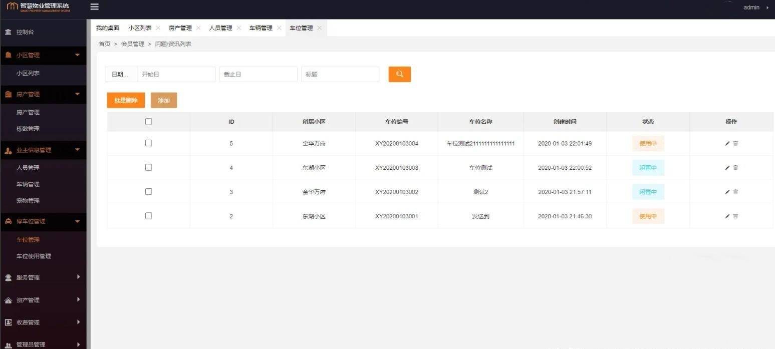 3.功能描述:实现了小区管理、房产管理、设备管理、业主管理、服务管理、车位管理等主要功能。提升物业管理水平,提高工作效率,降低成本,便于物业快速回收物业费;扩大服务范围和能力,方便住户,提升用户满意度;为物业公司扩展了新的收入渠道:租赁中介、社区团购、物业服务;为住户缴纳物业费、水电、停车费等生活费用,提供在线支付,方便快捷。