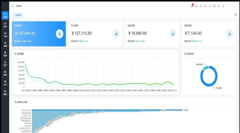 (6)停车记录查询:停车开始时间,停车时长,费用,地理位置等信息(后台数据实时刷新)