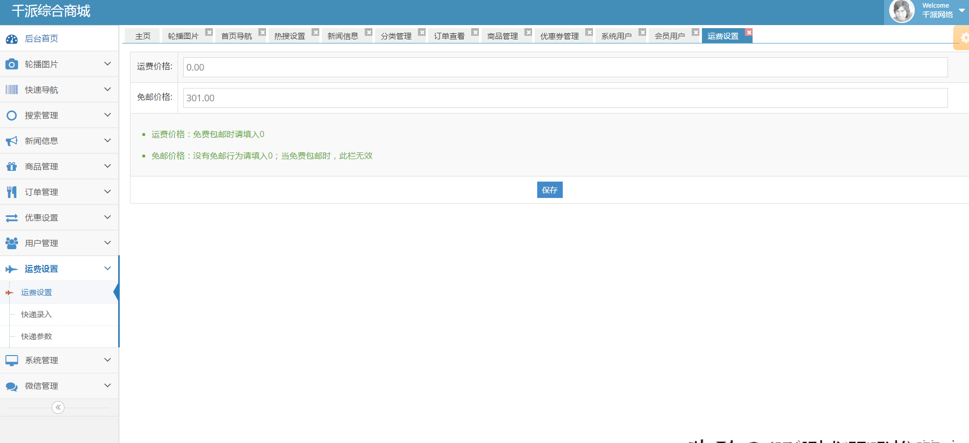 10.1、运费设置