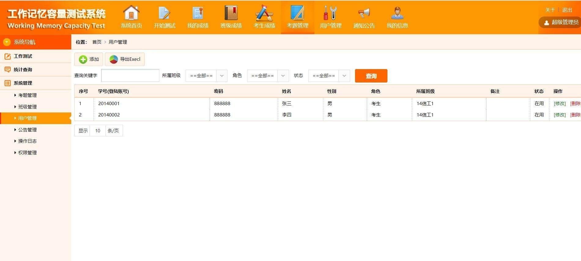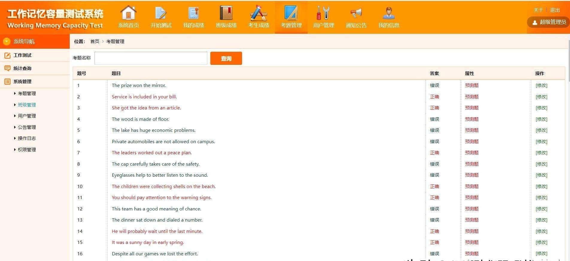 3、系统管理:考题管理、班级管理、用户管理、权限设置、公告管理、操作日志。