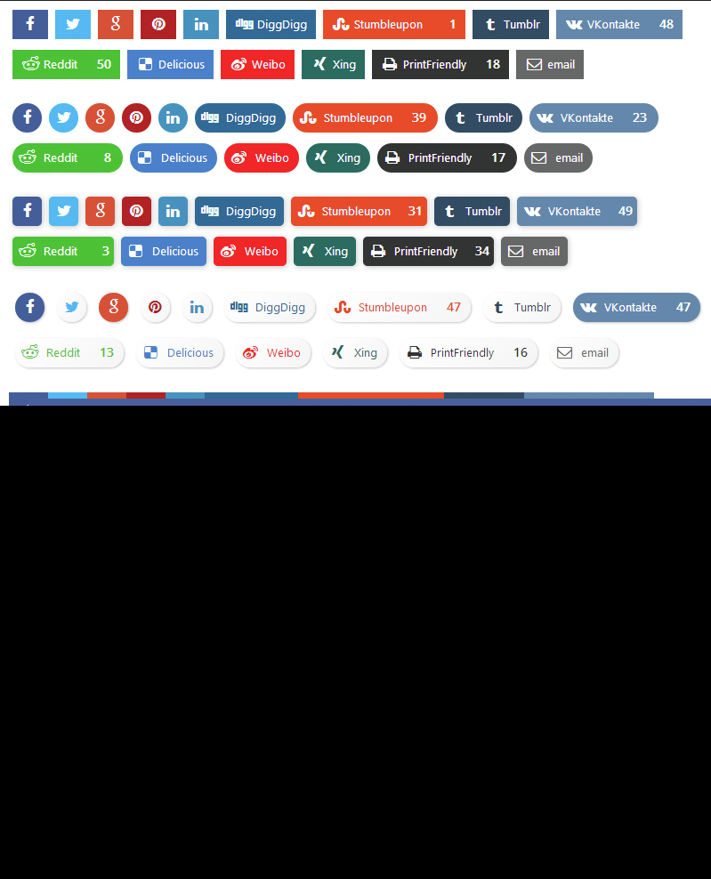 Social Share&Locker 是市场上唯一一个分享按钮效果很好的插件。共有 60 种共享选项:FaceBook、Twitter、Google Plus、LinkedIn、Pinterest、Vkontakte、DiggDigg、Stumbleupon、Tumblr、Reddit、Delicious、微博、Xing、Print Friendly、Email Sharing、Odnoklassniki、Whatsapp、Bufferapp、Mail.ru、Meneame , Evernote, GetPocket, Flattr, ManageWP, MySpace, Yahoo Mail, GMail, HackerNews, Blogger, Amazon, Newsvine, Viadeo, DOUBAN, 百度, Identi.ca, Yammer, SMS, Viber, Telegram, Comments, Love This, AOL, Flipboard , 发送电子邮件