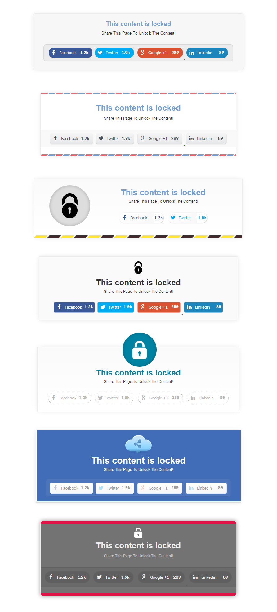 这个专门的部分是插件的“最重要的部分”。除了分享展示,通过社交分享和储物柜插件,您还可以通过阻止重要内容来提高您的社交知名度。用户需要共享您的页面才能获得新内容。锁定的内容可以是下载按钮、文本段落、视频或图片库。