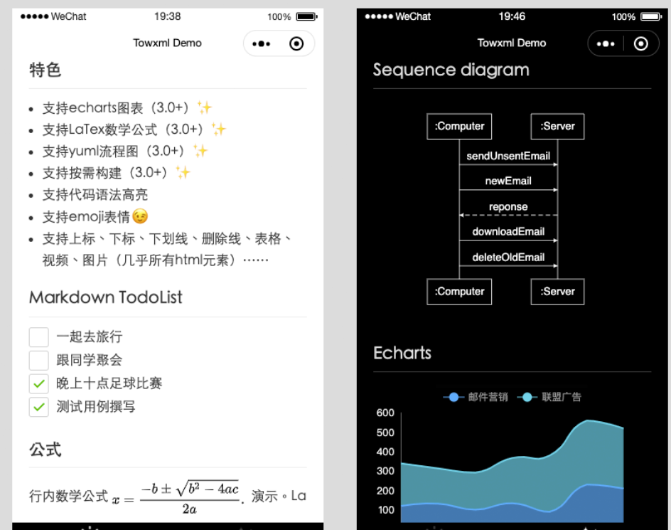 Towxml 是一个可将HTML、Markdown转为微信小程序WXML(WeiXin Markup Language)的渲染库。用于解决在微信小程序中Markdown、HTML不能直接渲染的问题。