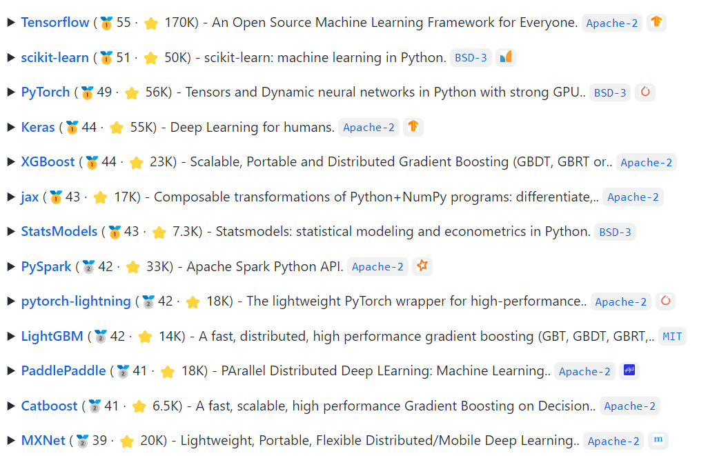 包含 920 个很棒的开源项目,共有 340 万颗星,分为 34 个类别。所有项目都按项目质量分数进行排名,该分数是根据从 GitHub 和不同包管理器自动收集的各种指标计算得出的。
