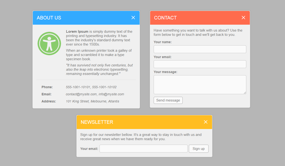 它支持具有自定义内容的窗口,这些内容在页面上作为叠加层打开。