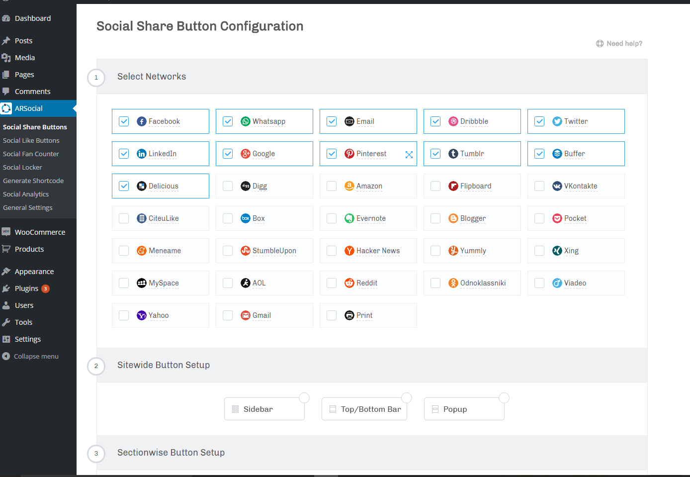 ARSocial 允许您在侧边栏、顶部/底部栏和弹出窗口以及在页面和帖子中按部分显示您的社交网络按钮。